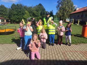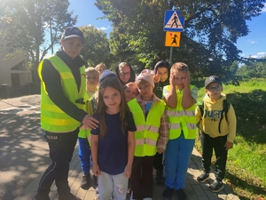 W czwartek (25.09.2025 r.) w ramach działań ,,Bezpieczna droga do szkoły” policjantka odwiedziła uczniów zerówki i 1 klasy ze Szkoły Podstawowej w Perłach. Funkcjonariuszka z węgorzewskiej jednostki policji przybliżyła najmłodszym uczestnikom ruchu drogowego podstawowe zasady bezpieczeństwa. Spotkanie miało na celu zapoznanie dzieci z zasadami prawidłowego poruszania się po drogach, ze szczególnym uwzględnieniem przechodzenia przez jezdnię, aby ci wiedzieli jak bezpiecznie dotrzeć do szkoły i domu. Funkcjonariuszka oprócz przedstawienia teorii dotyczącej podstawowych zasad ruchu drogowego przeprowadziła również zajęcia praktyczne, dzięki którym dzieci wiedzą, jak bezpiecznie i prawidłowo przechodzić przez jezdnię. Policjantka zachęcała dzieci, aby nosili elementy odblaskowe nie tylko poza terenem zabudowanym, szczególnie teraz kiedy dni coraz szybciej przechodzą w noce, a piesi w takich warunkach mogą być słabiej widoczni przez kierowców. Każde dziecko otrzymało odblask, a placówka wzbogaciła się o kamizelki odblaskowe, które będą wykorzystywane podczas spacerów i wycieczek szkolnych. Wszystko po to, by zadbać o widoczność i bezpieczeństwo najmłodszych uczestników ruchu drogowego.
