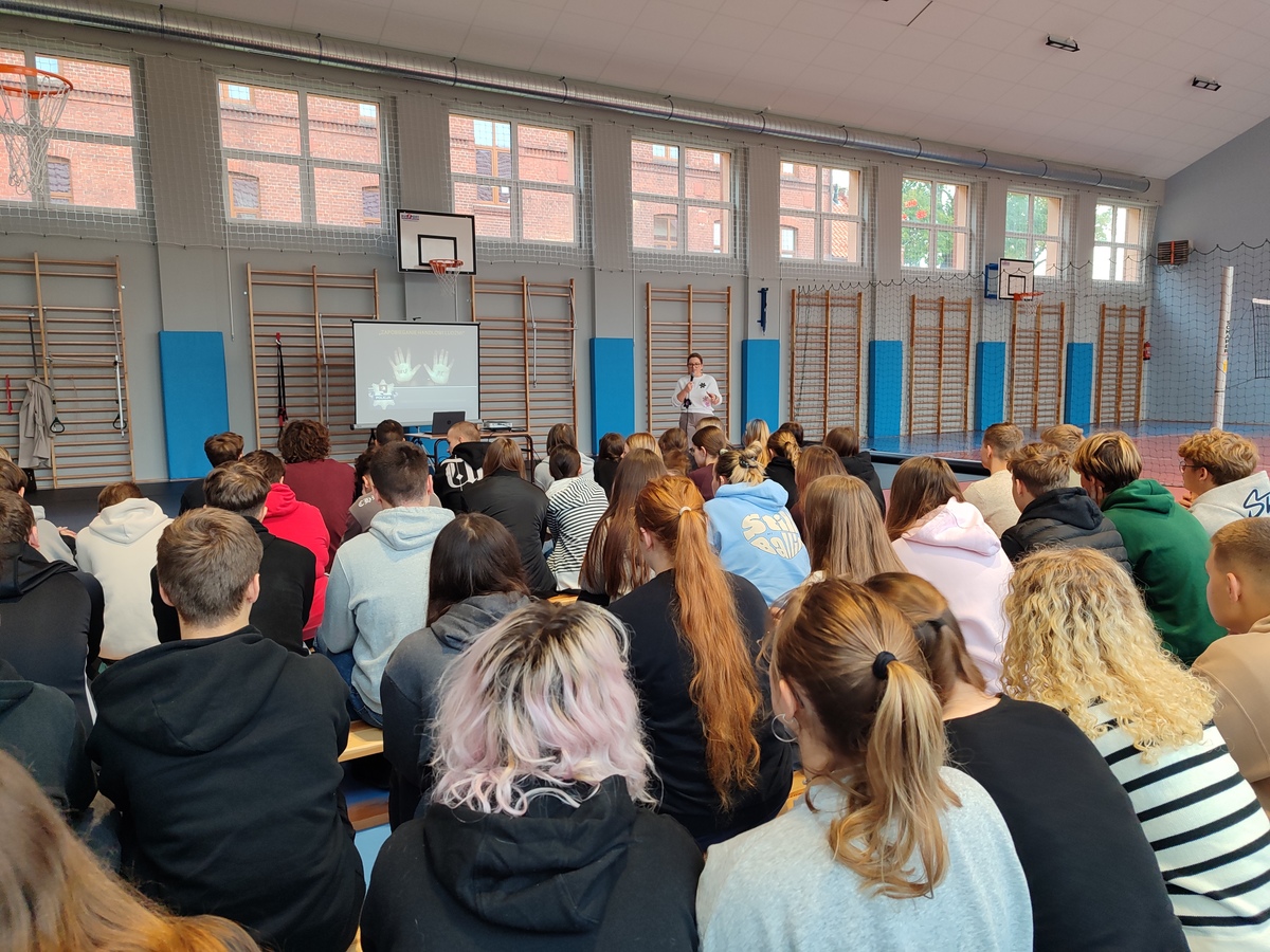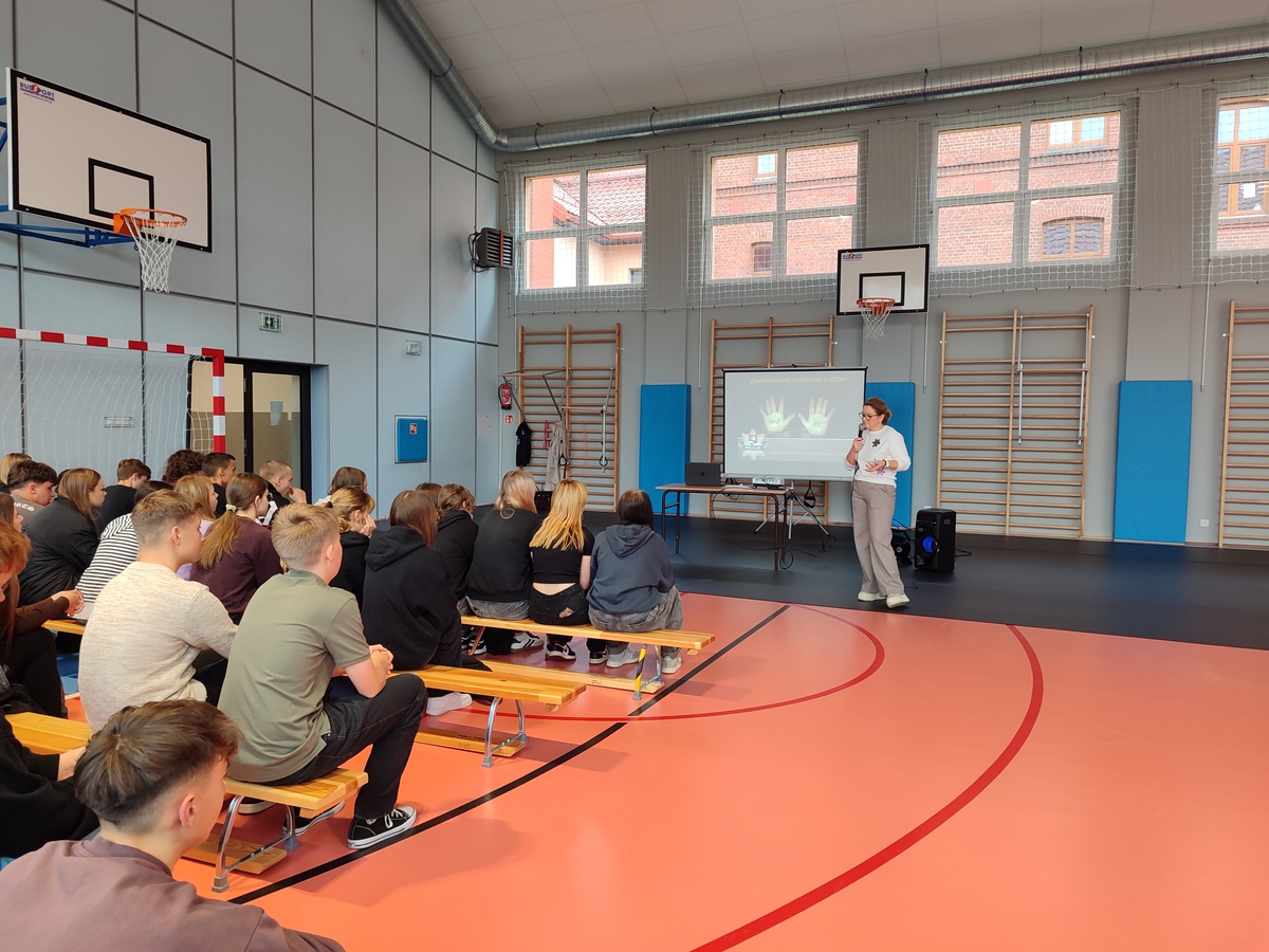 Z kolei przedstawicielka sanepidu skupiła się na tematyce substancji psychoaktywnych- ich rodzajach, działaniu na organizm oraz konsekwencjach zdrowotnych ich stosowania. Uczniowie poznali również mechanizmy uzależnień i sposoby unikania ryzykownych zachowań.