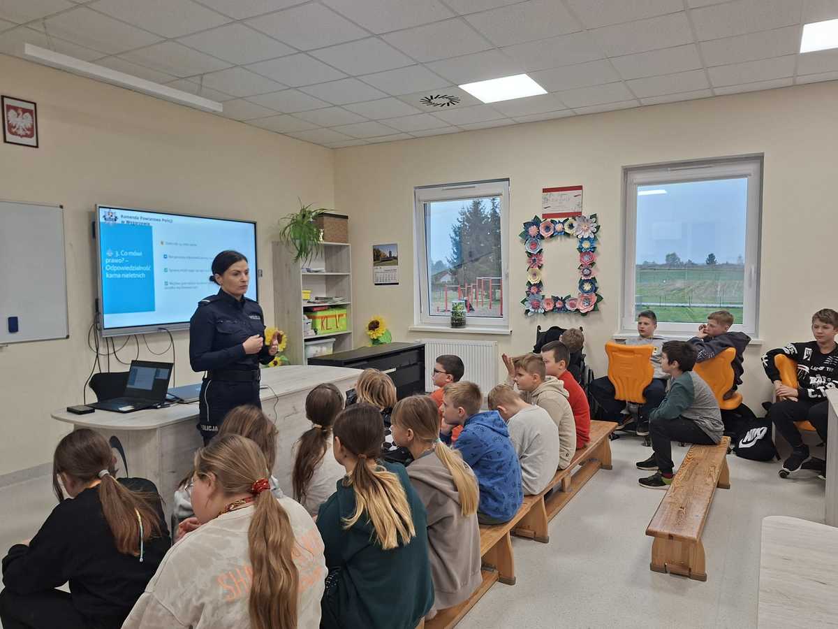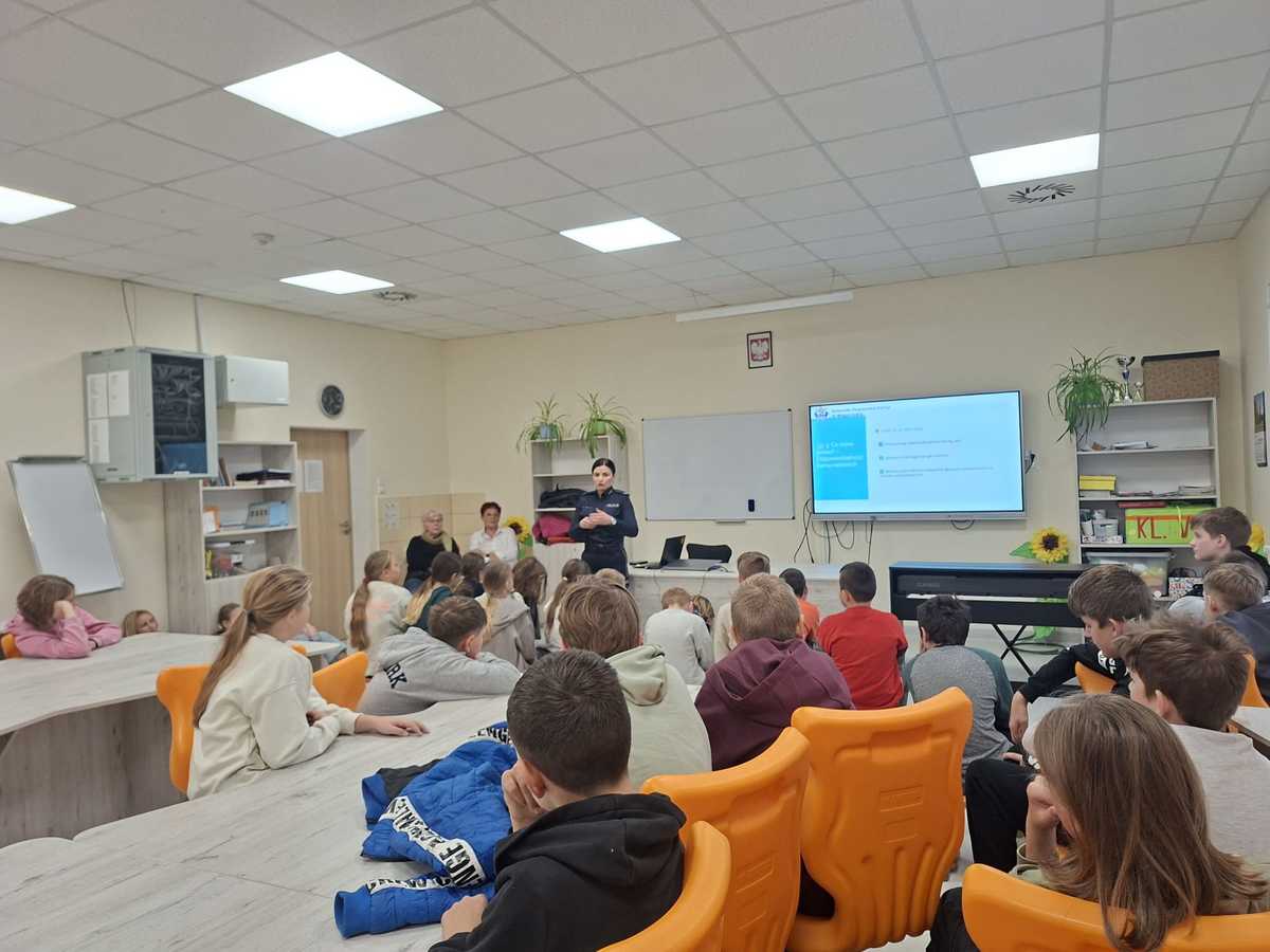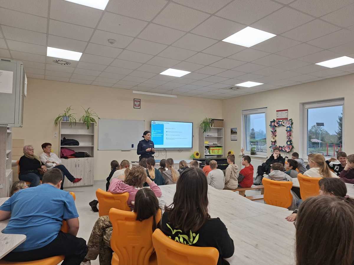O agresji w kontaktach między uczniami słychać bardzo często, dlatego też węgorzewska policjantka spotkała się w piątek (24.10.2025 r.) z uczniami Szkoły Podstawowej im. Jadwigi Tressenber w Pozezdrzu. Podczas prelekcji mówiła, czym jest przemoc i agresja oraz jak postępować, gdy jesteśmy ich świadkami. W ramach ogólnopolskiej kampanii społecznej "Dzieciństwo bez Przemocy", mundurowa przypomniała wszystkim o bezwzględnym stosowaniu się do zasad i norm regulujących zachowanie młodych ludzi w kontaktach z rówieśnikami. Uczniowie dowiedzieli się, kim jest osoba nieletnia, czym jest demoralizacja, co to jest czyn karalny. Była mowa także mowa o hejcie, mowie nienawiści, cyberzagrożeniach. Funkcjonariuszka ostrzegała nieletnich o tym, że nieprzestrzeganie prawa może doprowadzić do poważnych konsekwencji, np. nadzoru kuratora, skierowania sprawy do sądu rodzinnego czy też umieszczenia nieletniego w placówce wychowawczej. Policjantka apelowała do młodzieży, aby nie bagatelizowali niepokojących sytuacji i zawsze zgłaszali przypadki przemocy.