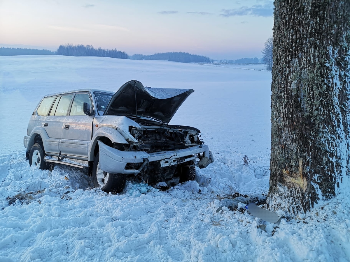 W poniedziałek (07.01.2026 r.) po godzinie 7:00 oficer dyżurny otrzymał zgłoszenie o zdarzeniu drogowym na trasie między miejscowością Kalskie Nowiny a Węgorzewem. Z ustaleń policjantów ruchu drogowego wynika, że 45-letnia kierująca toyotą straciła panowanie nad autem, w wyniku czego zjechała na pobocze i uderzyła w przydrożne drzewo. Z mieszkanką gminy Budry podróżowała 17-latka. Uczestniczki zdarzenia zostały przewiezione do szpitala. Badanie alkomatem wykazało, że 45-latka była trzeźwa.