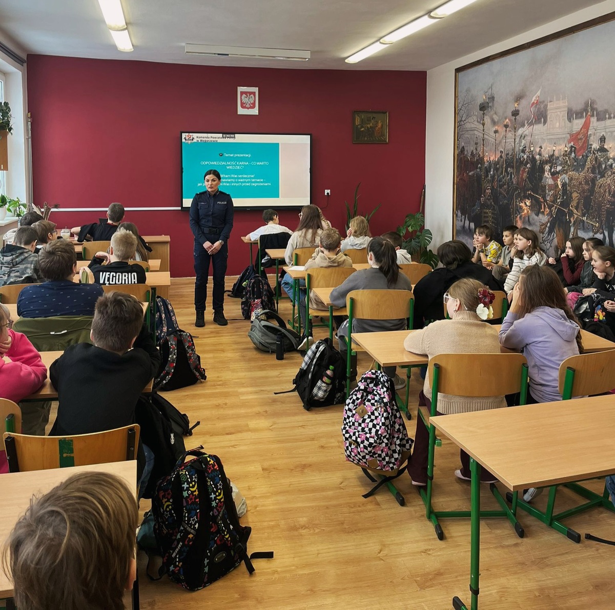 W środę (11.02.2026 r.) policjantka do spraw profilaktyki z węgorzewskiej komendy odwiedziła uczniów Szkoły Podstawowej nr 2 im. Janusza Korczaka w Węgorzewie.