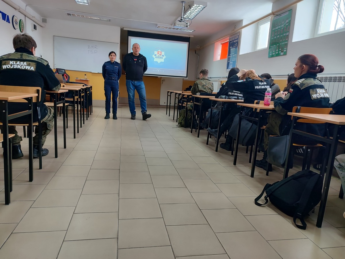 Spotkanie przebiegło w bardzo dobrej atmosferze, a młodzież wykazała duże zainteresowanie tematyką służby. Takie inicjatywy są ważnym elementem budowania świadomości młodych ludzi na temat pracy Policji oraz zachęcania ich do rozważenia tej ścieżki zawodowej w przyszłości.