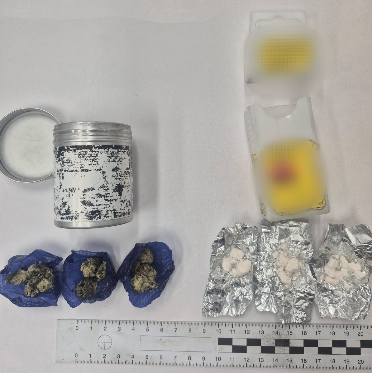 W czwartek (05.03.2026 r.) policjanci Wydziału Kryminalnego otrzymali informację o mężczyźnie, którego zachowanie zaniepokoiło osoby postronne. Podczas patrolu zauważyli go w rejonie jednego ze sklepów na terenie Węgorzewa. Funkcjonariusze wylegitymowali mężczyznę znajdującego się na zapleczu sklepu, a następnie przeprowadzili jego przeszukanie. W trakcie wykonywanych czynności kryminalni ujawnili przy nim dwa opakowania, wewnątrz których w foli aluminiowej znajdowały się niedozwolone substancje. W jednym z nich była zbrylona biała substancja, natomiast w drugim susz roślinny.